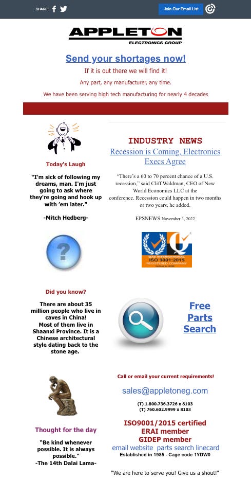 Marketing / Sales: 100% inbound email. Owner sends 1x a month newsletter email to ~3,000 customers (see it below 😳 😂)