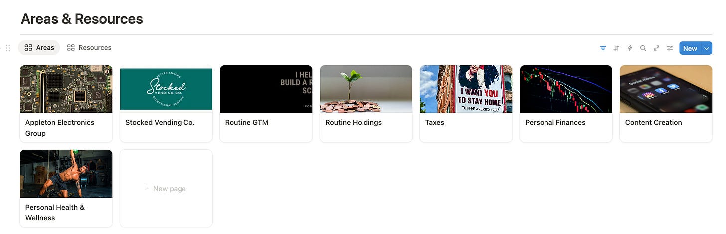 From here, each area is built out with the Projects, Resources, Tasks and archives.
